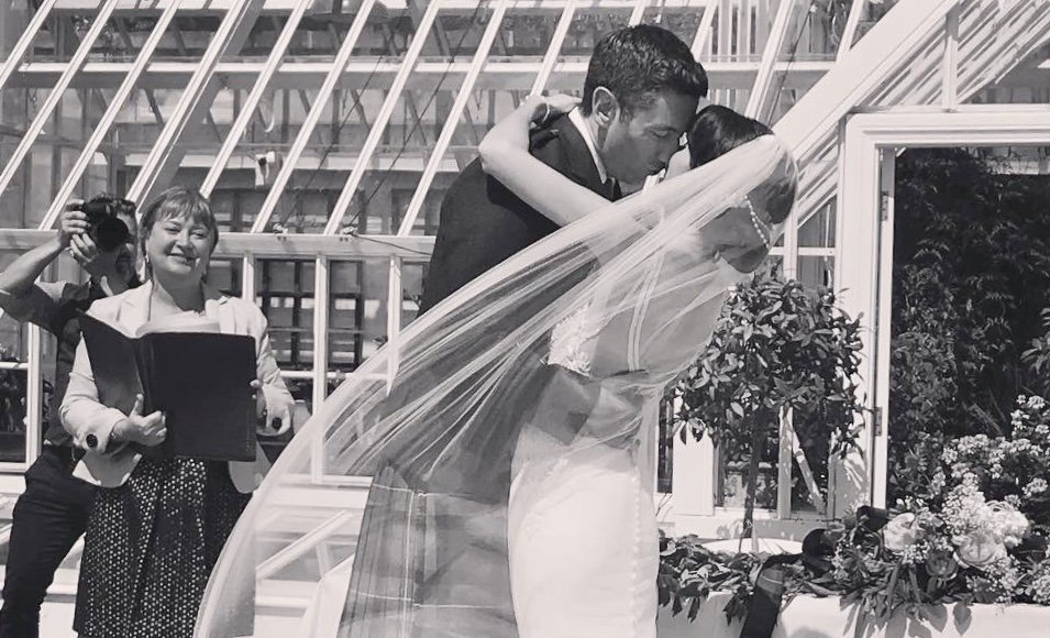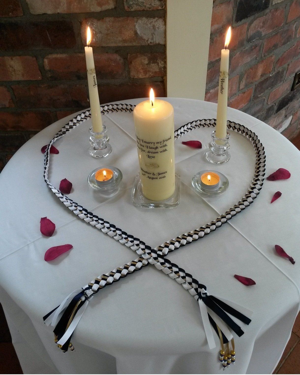 A unity candle ceremony and hand fasting all in the one ceremony. Beautiful!